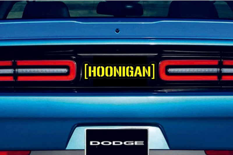 Dodge Challenger trunk rear emblem between tail lights with Hoonigan logo