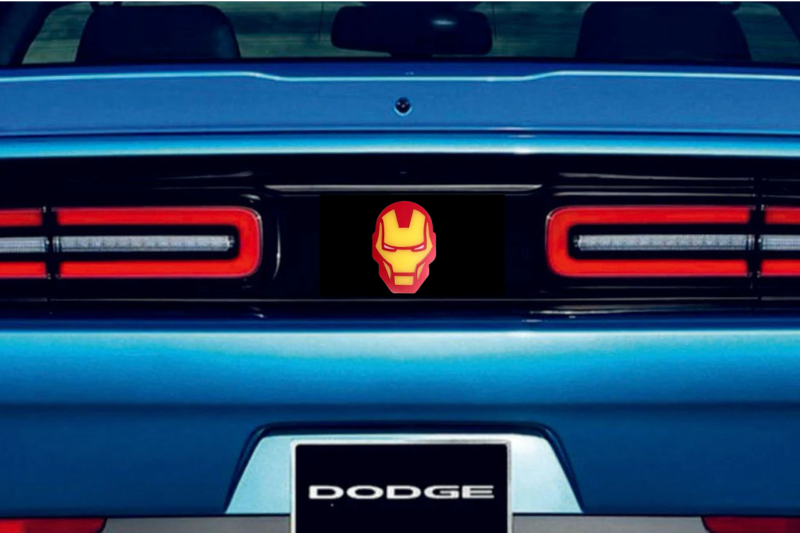 Dodge Challenger trunk rear emblem between tail lights with Iron Man logo
