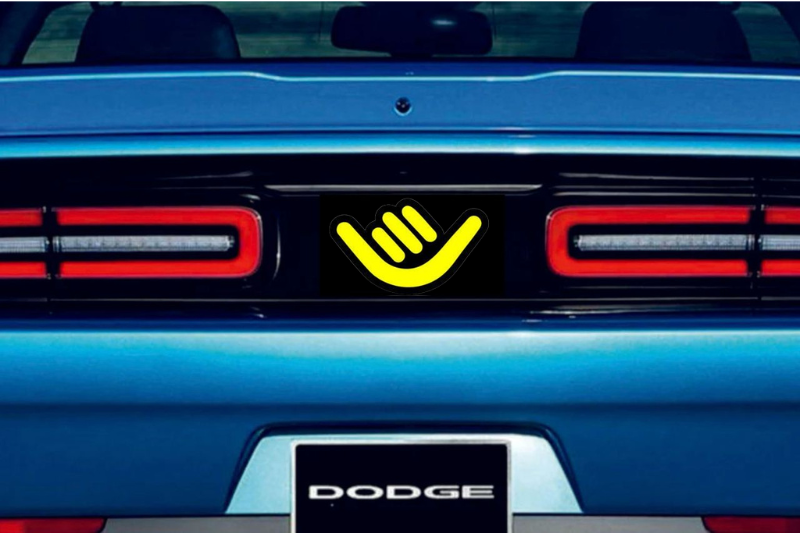 Dodge Challenger trunk rear emblem between tail lights with Shaka logo