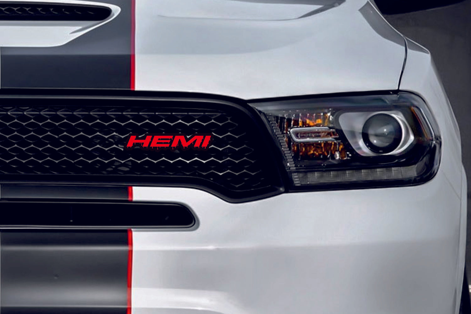 Radiator grille emblem with HEMI Blood logo